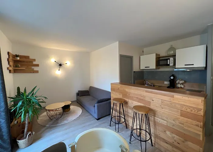 Die 1-Zimmer-Ferienwohnung Le Paisible * * * in Aurillac liegt 10 km vom Flughafen Aurillac entfernt. Das Apartment bietet Ausblicke auf den Garten.